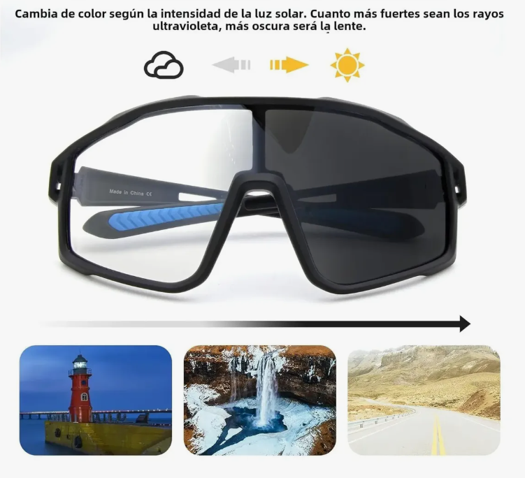 No necesitas cambiar de lentes ni cargar repuestos. Las gafas fotocromáticas funcionan tanto en exteriores como en interiores, lo que las hace ideales para entrenamientos continuos o recorridos con cambios constantes de luz.